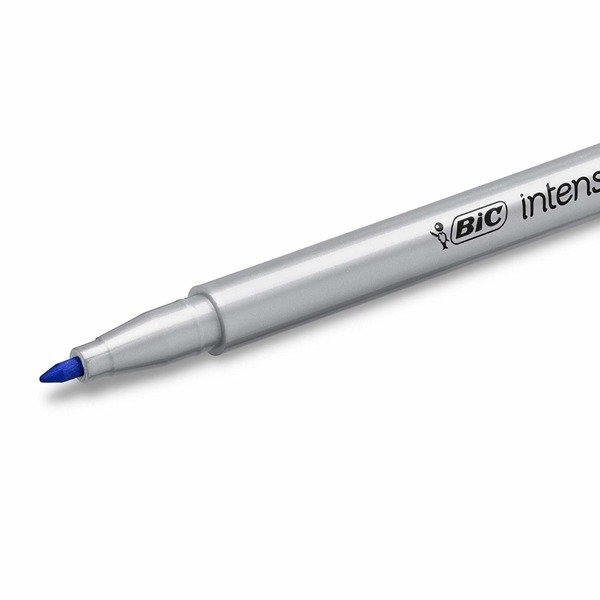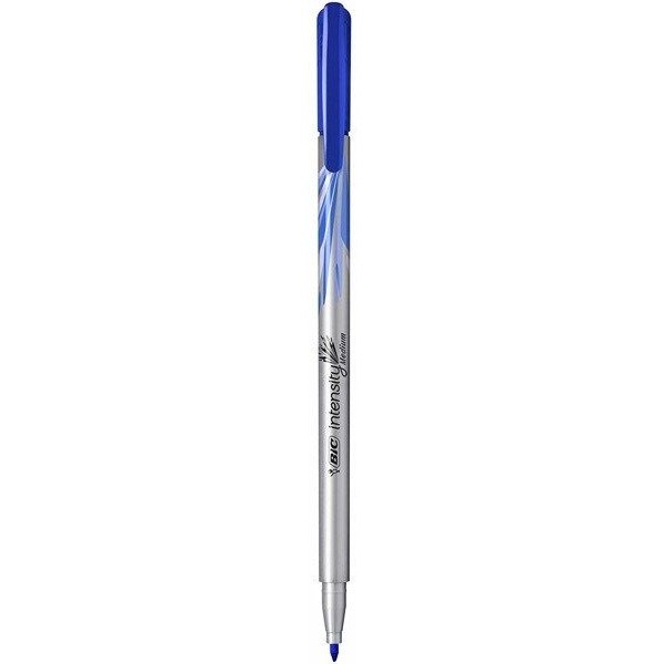 Cienkopis z końcówką średniej grubości z tuszem na bazie wody w kolorze niebieskim.
