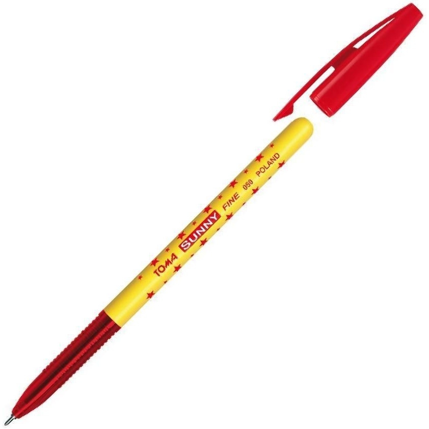 Długopis jednorazowy w plastikowej żółtej obudowie w gwiazdki w kolorze tuszu. Wentylowana nasadka, trwała kulka z węglików spiekanych 0,7mm. Nowy wkład do pisania po wszystkich rodzajach papieru, np po odwrotnej stronie druków samokopiujących (faktur).