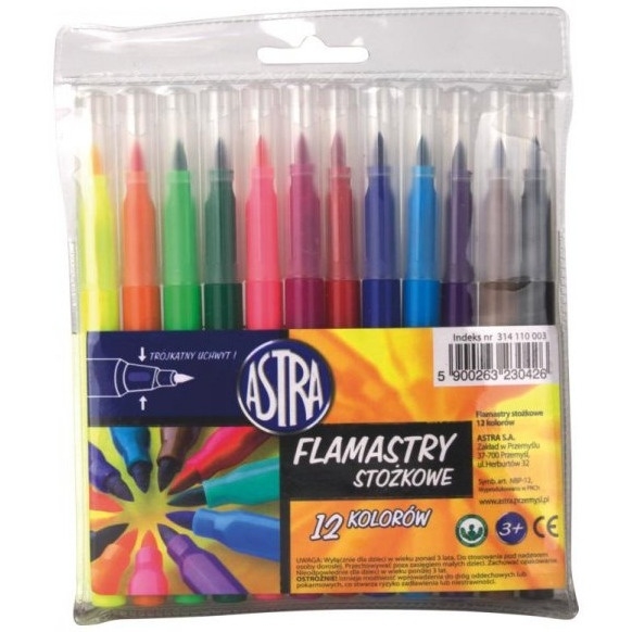 Flamastry stożkowe 12kol ASTRA 314110003