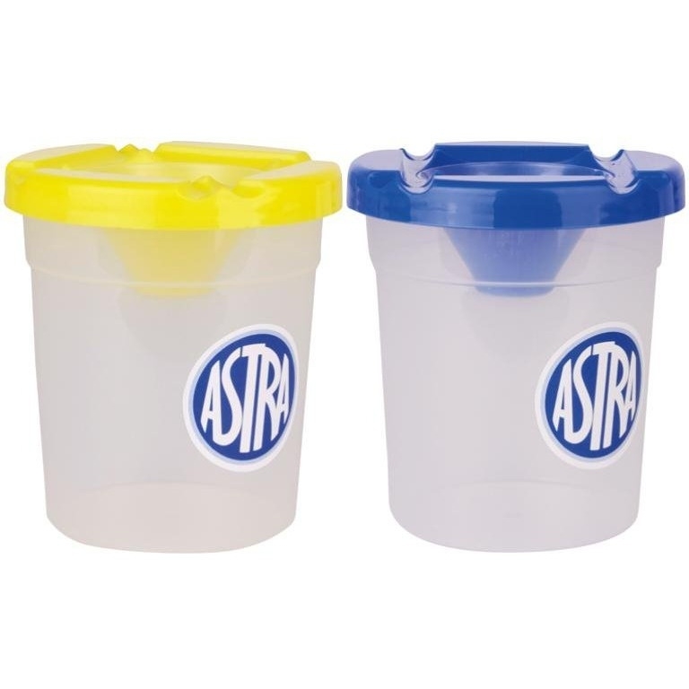Kubeczek z blokadą wylania ASTRA zabezpiecza miejsce prac plastycznych. Blokada hamuje płyn przed wydostaniem się z pojemnika w przypadku jego niekontrolowanego przechylenia lub przewrócenia. Pojemność - 150 ml.