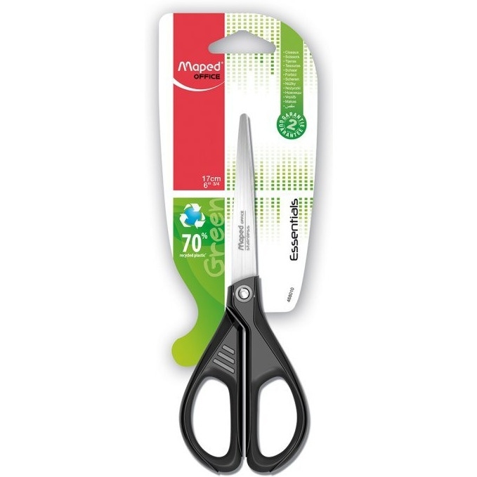 Nożyczki ekologiczne Essentials Green__uchwyty w 70% wykonane z surowców pochodzących z recyklingu__ostrza i nit ze stali nierdzewnej gwarantują długotrwałe użytkowanie__dostępne w długości 17 cm z symetrycznym uchwytem i 21 cm_z asymetrycznym uchwytem__jednostka sprzedaży 1 sztuka