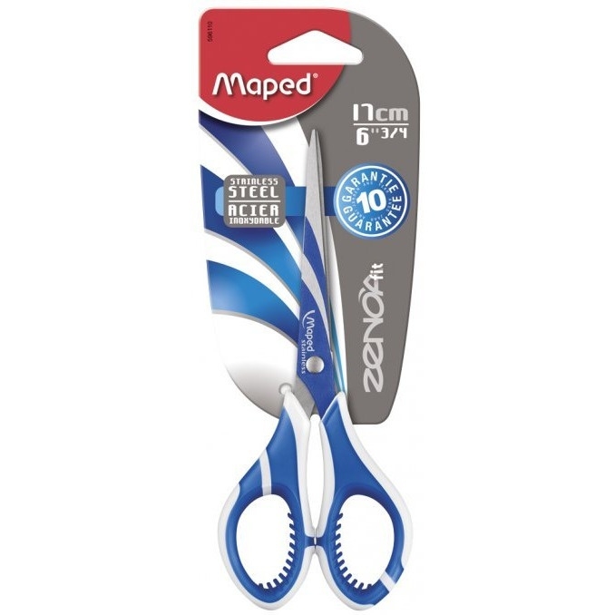 Nożyczki z wyprofilowanymi, miekkimi w środku uchwytami. Symetryczne. Przystosowane dla osób prawo- i leworęcznych. Zdobione ostrza i nit wykonane ze stali nierdzewnej. Dostępne w kolorach: niebieski, szary i zielony. Długość 17 cm. Gwarancja 10 lat. JS 1 blister.