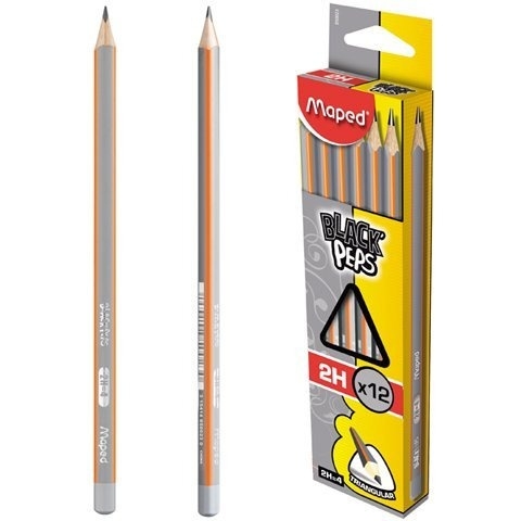 Ołówek BLACKPEPS 2H wykonany z drewna lipowego, ergonomiczny, trójkatny kształt, odporny na złamania grafit, czytelne oznaczenie twardości. JS: pudełko 12 szt