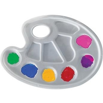 _ praktyczna paletka w kolorze białym ułatwiająca dozowanie farb__ posiada otwór na palec, 6 mniejszych i 4 duże wytłoczenia na farbę