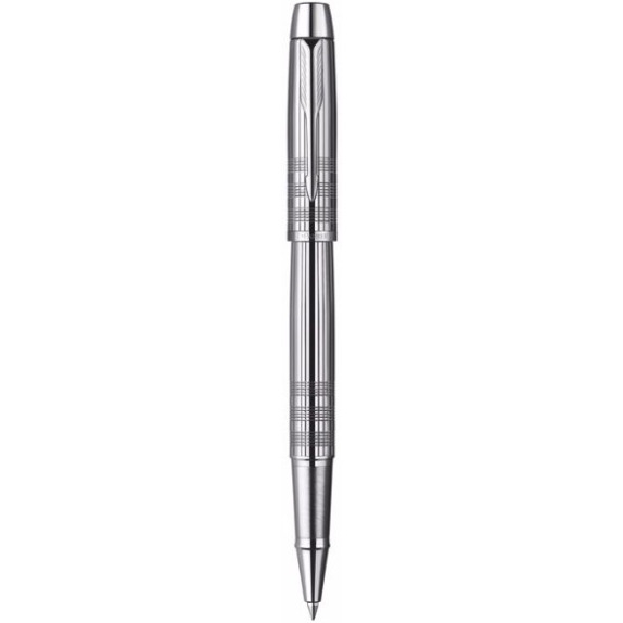 Parker IM jest inteligentnym mariażem formy i funkcji. Każdy szczegół, począwszy od stylizowanego na kształt strzały klipsa, do uchwytu ze stali nierdzewnej, jest starannie zaprojektowany na rzecz komfortu i praktyczności. Nowoczesny grawer na lakierowanej, mosiężnej bazie. Błyszczące wykończenie w kolorze chromu. Wyposażone w standardowy wkład Parker do pióra kulkowego.