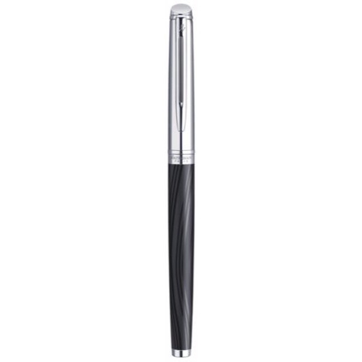 Prosta, elegancka i ponadczasowa linia to elementy wyróżniające kolekcję H_misph_re. Najpopularniejsza seriia Waterman urzeka niezwykłym połączeniem klasyki i nowoczesności. Lśniący, pokryty czarnym lakierem korpus zdobiony falistym grawerem Waterman korpus tworzy idealne połączenie ze lśniącą, platerowaną palladem nasadką. Wykończenia chromowane. Pióro wyposażone jest w stalówkę z wysokiej jakości stali.