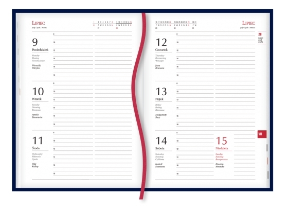 układ kalendarium: 1 tydzień - 2 strony