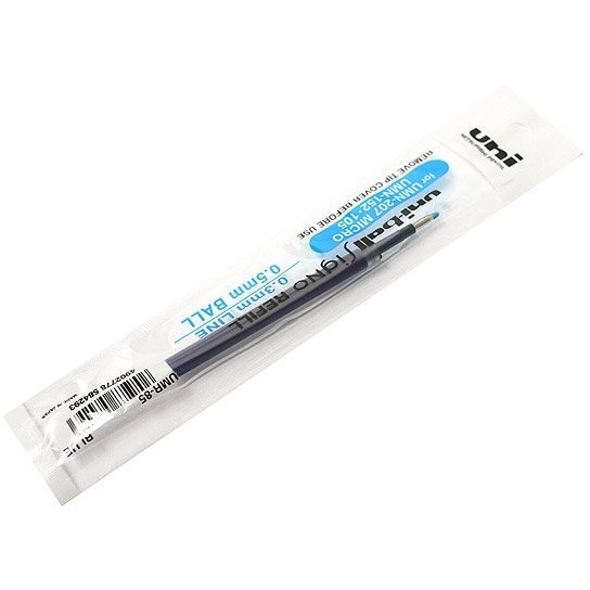 Wkład UMR-85 do długopisu żelowego UNI UMN-152 _ tusz pigmentowy, wodoodporny i odporny na blaknięcie _ średnica kulki piszącej 0,5 mm _ grubość linii pisma ok. 0,3 mm