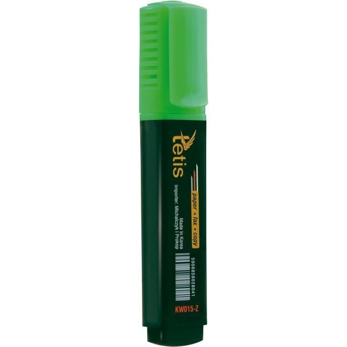 Płaski zakreślacz przeznaczony do papieru zwykłego, samokopiującego i faksowego. Wypełniony wodo- i światłoodpornym tuszem pigmentowym na bazie wody. Nie zawiera ksylenu i toluenu.