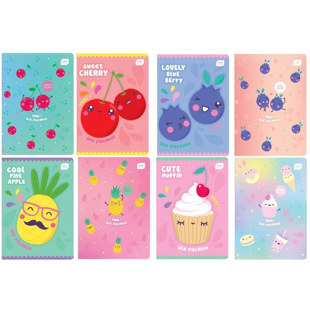 • nowość - zapachowe zeszyty Intedruk, każdy wzór (jagoda, wiśnia, guma balonowa, ananas) okładki wydziela inny zapach!